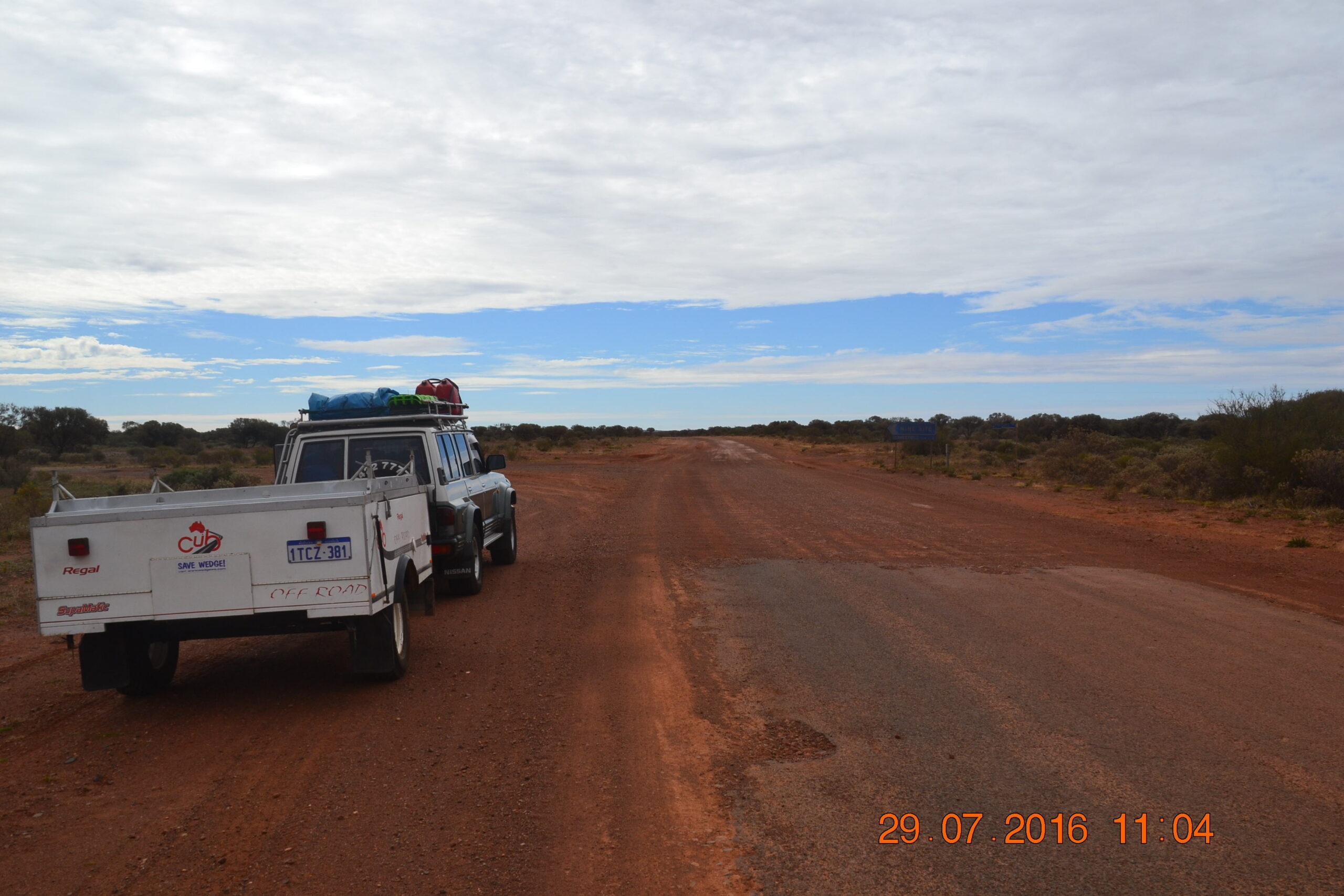 The camper is a Cub Regal Supamatic Off Road model.  It is very simple and robust, and I was confident it would handle the trip.  Suspension is a solid beam axle with heavy duty springs and shock absorbers.  It has steel off road wheels and good all-terrain tyres, and the hard floor set-up is very easy to adapt to any terrain.  What was a solid package to start with was made journey-ready.  Cub’s reputation for making very solid reliable camper trailers proved itself, and we had no problems with it during the trip.  The stud pattern is the same as the Patrol, but wheel diameter is 15″, not 16″, but at a pinch it could use the additional 16″ steel spare we carry on the rack, and for that matter the 15″ trailer spare could get us by on the truck if it had to.  3 spares between the vehicle and trailer seemed adequate.