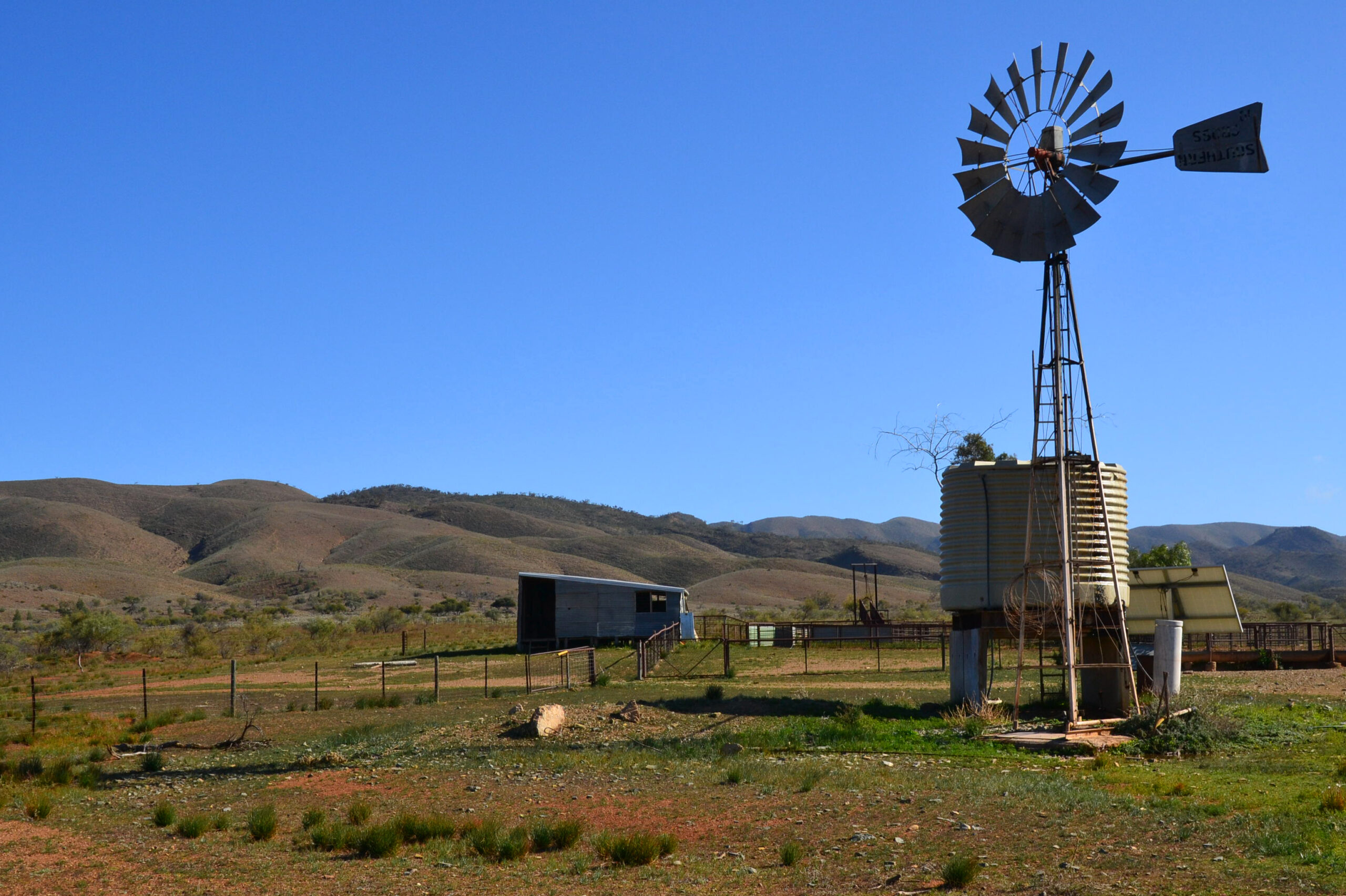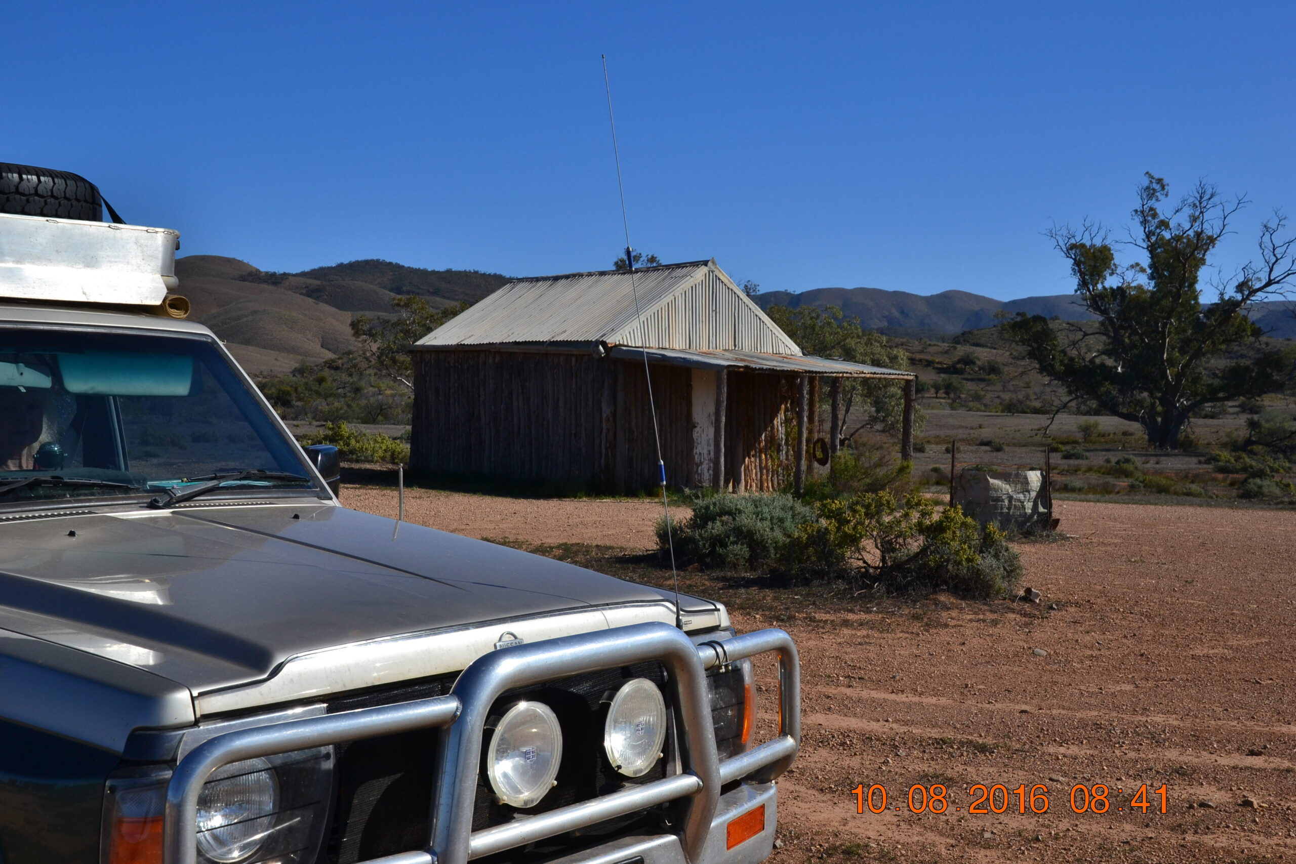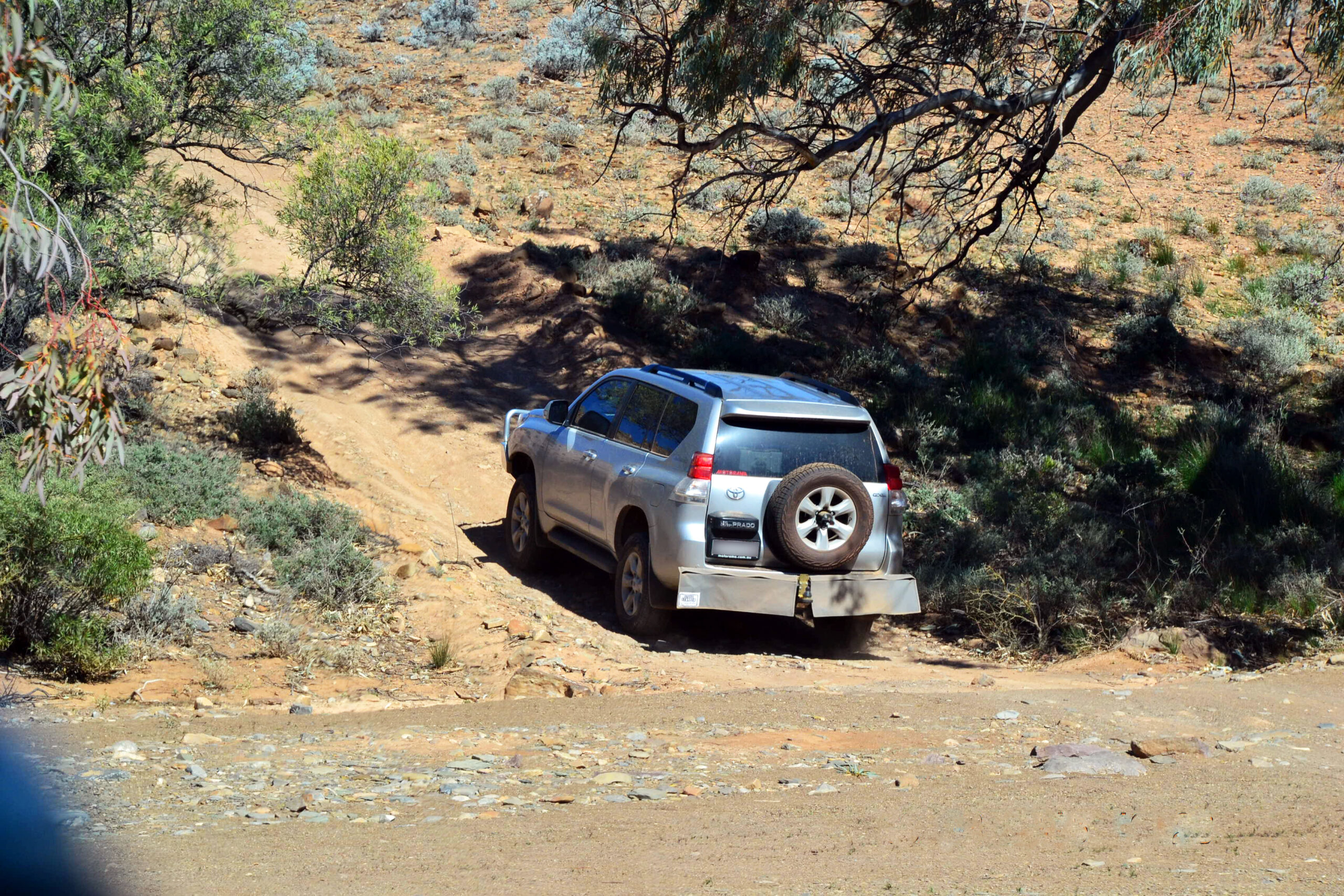 We had two mechanical issues, again both relatively easily solved.  Both occurred while travelling the rough unsealed road through the Flinders Ranges to Arkaroola.  The first sounded like a stone lodged in between the shield and a brake disk.  We couldn’t see anything when we stopped to investigate, and moving forwards or backwards didn’t dislodge it.  Ruth then noticed what the problem was.  The protection shroud for the LPG tank had fallen loose, three of the four mounting points had literally sheared off with all the rough road running we had done, and the shield was dragging on the ground with the fourth mounting point about to break off.